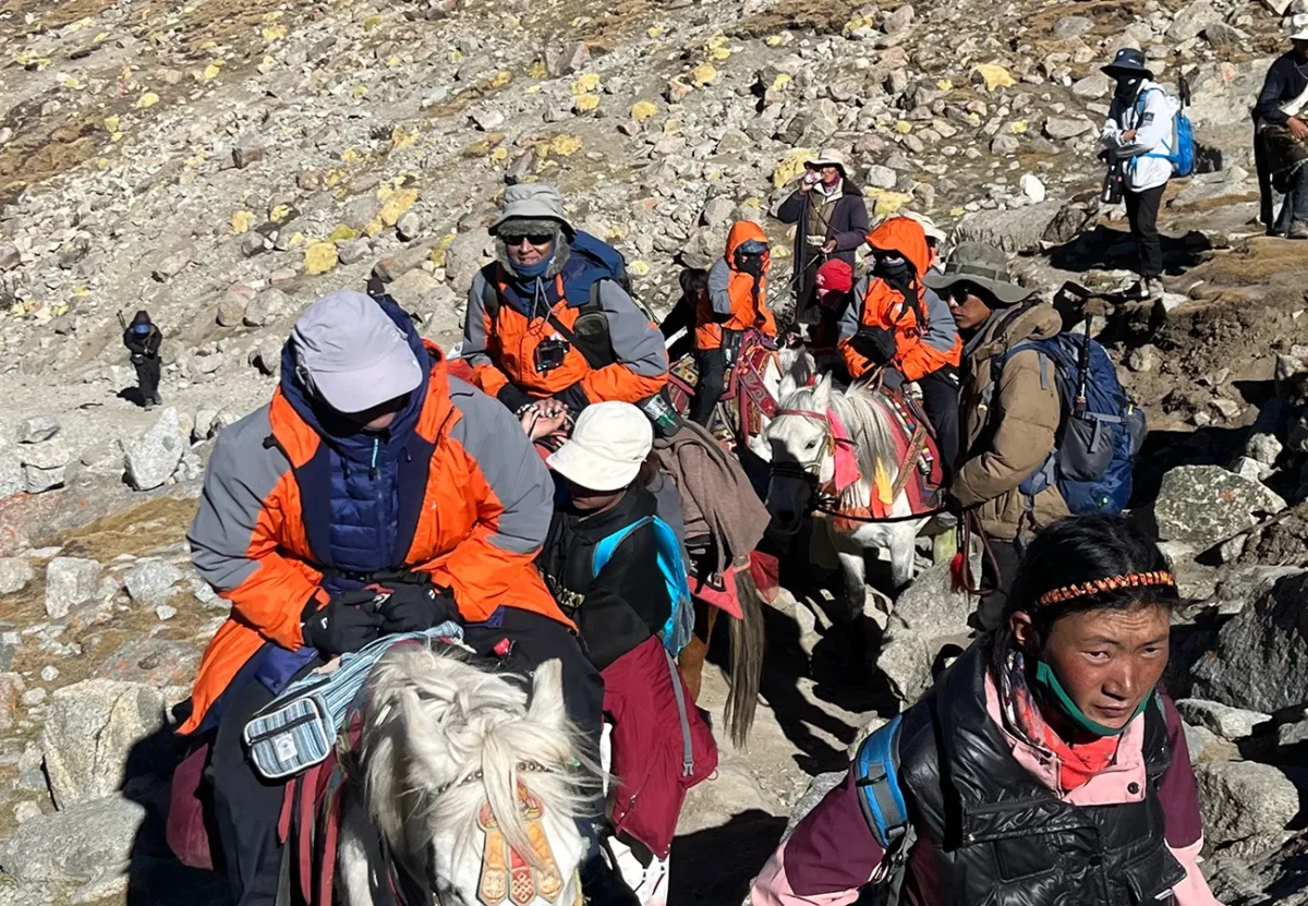 Dolma-La Pass sits at a challenging altitude. Prepare yourself physically and mentally. Pilgrims believe leaving old clothes, strands of hair, or drops of blood at Shiva-sthal will gain mercy from Yamraj, the Hindu god of death. Buddhists link Dolma-La to the compassionate goddess Tara, while Hindus connect it with the goddess Parvati, Lord Shiva’s divine wife.