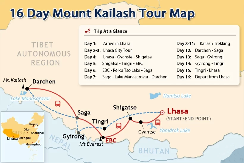 Lhasa, EBC, Lake Mansarovar, and Charan Sparsh with Kora included