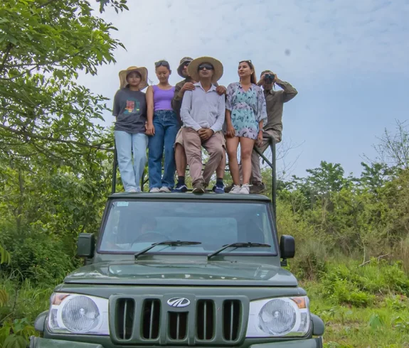 As you drive through the park, your guide helps you spot animals. If you’re lucky, you might see rhinos, deer, or even a tiger. The lush forest and grassy plains are beautiful. You take lots of photos and enjoy the wild sights and sounds.
